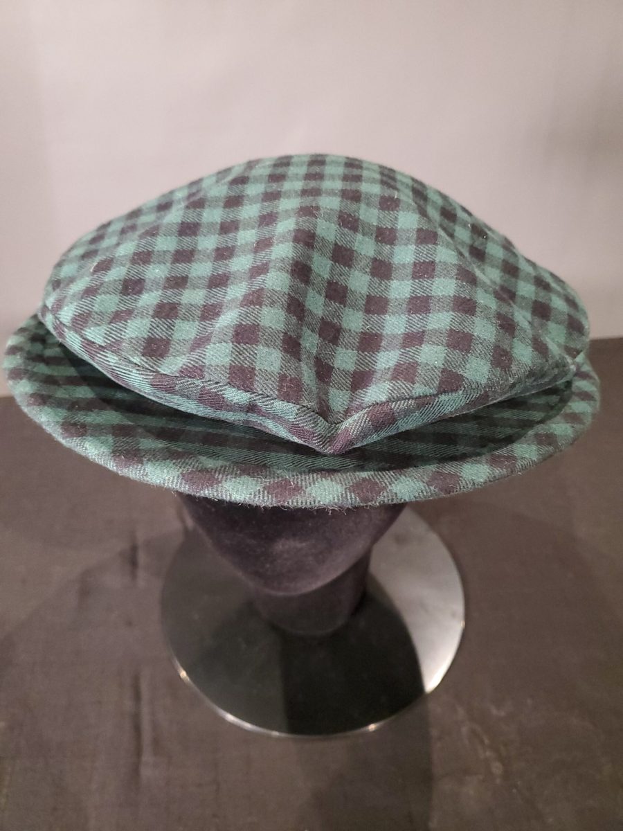 Tudor-style pancake hat: Hard brim, soft bag crown.