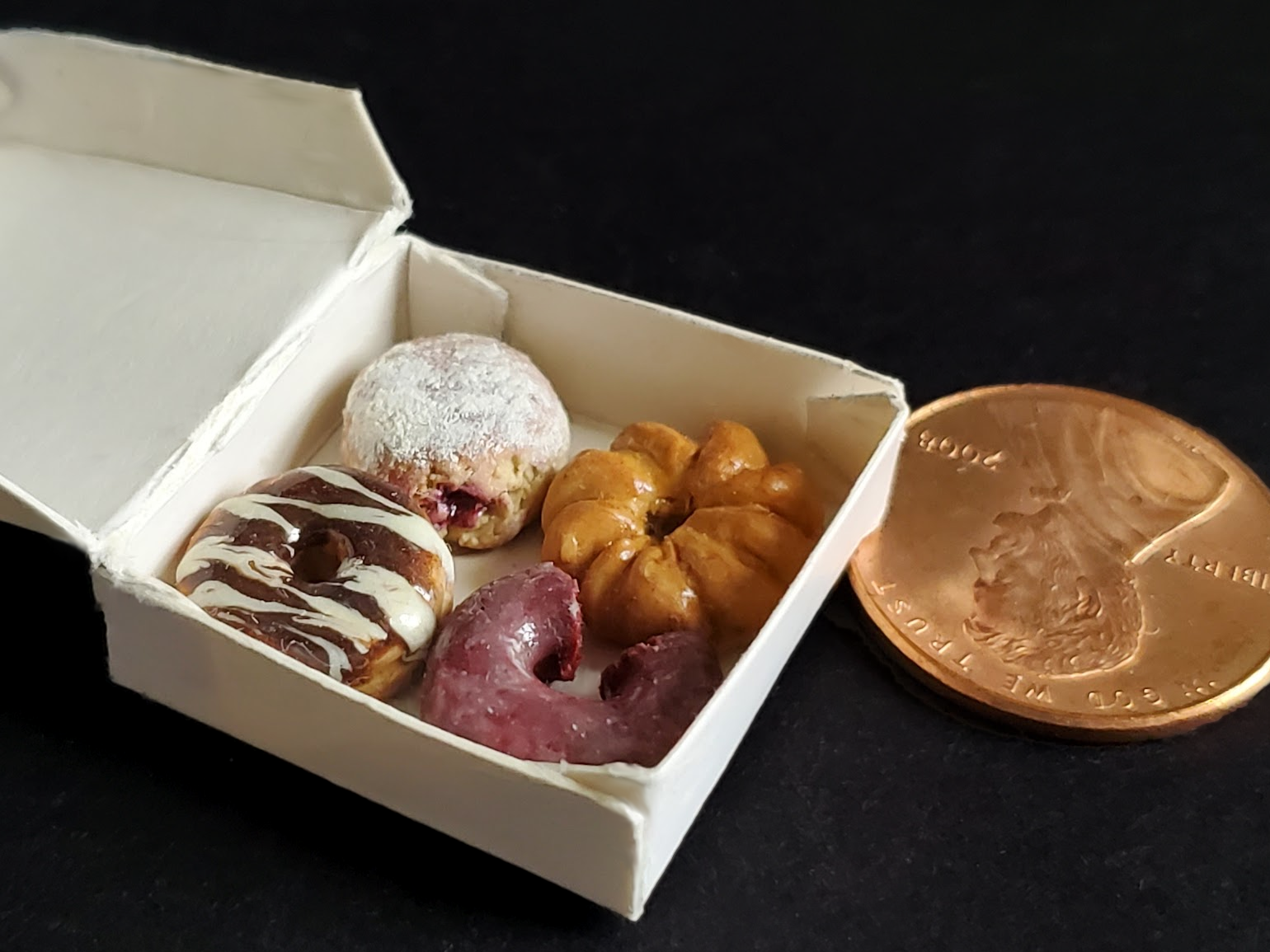 Miniature food sculpted from polymer clay. Roughly 1:12 scale.