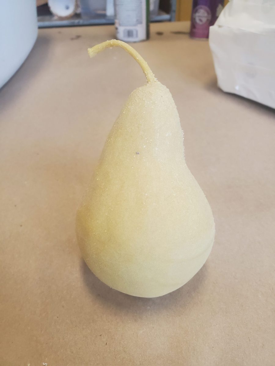 Created from a silicone split mold, made from a real fruit. Pear casts were made in both a soft and firm version of expanding urethane foam, and cast in soy wax.