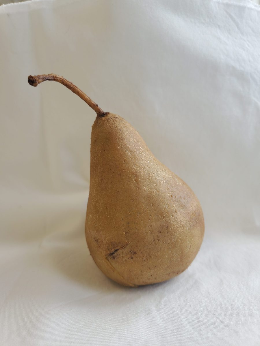 Created from a silicone split mold, made from a real fruit. Pear casts were made in both a soft and firm version of expanding urethane foam, and cast in soy wax.