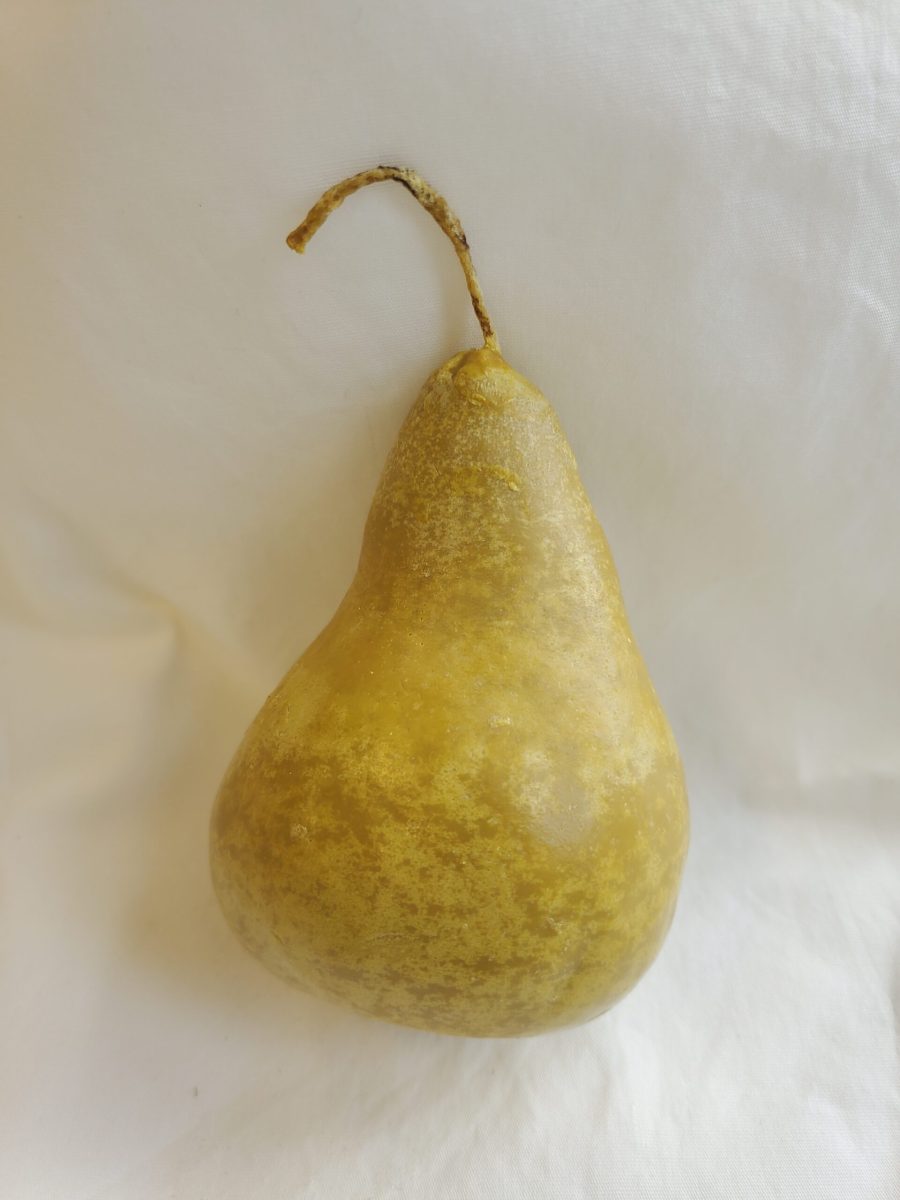 Created from a silicone split mold, made from a real fruit. Pear casts were made in both a soft and firm version of expanding urethane foam, and cast in soy wax.